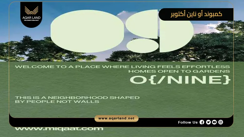وسط أرقى المشاريع السكنية غرب القاهرة، يبرز كمبوند أو ناين أكتوبر Compound O Nine 6 October، فقد حرصت شركة ميقات للتطوير العقاري Miqaat Developments على أن يجسد مشروعها المعني الحقيقي للسكن في مجتمع سكني معيشي متكامل.