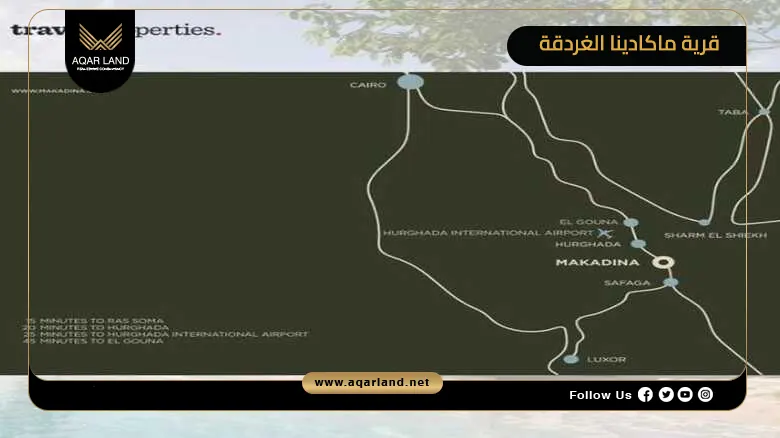 - المسافة الزمنية بين قرية ماكادينا البحر الأحمر ومطار الغردقة الدولي، تبلغ 25 دقيقة فقط.