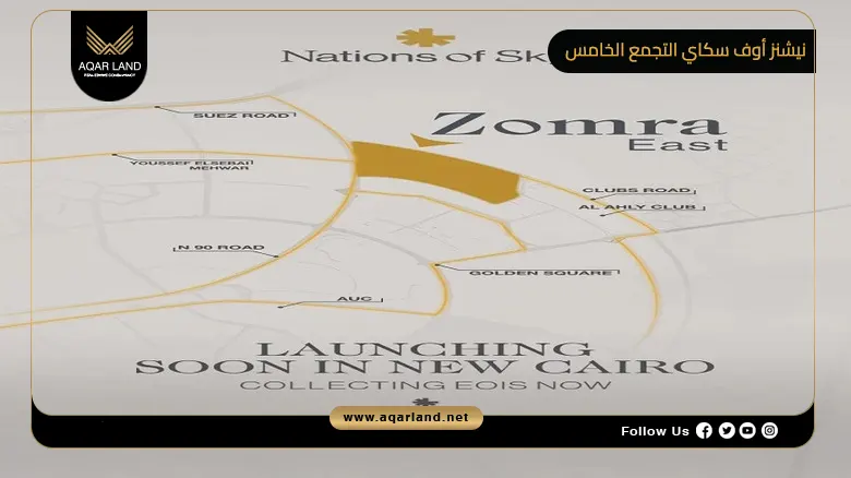 - يقترب كمبوند نيشنز أوف سكاي التجمع الخامس من شارع التسعين الجنوبي والشمالي.