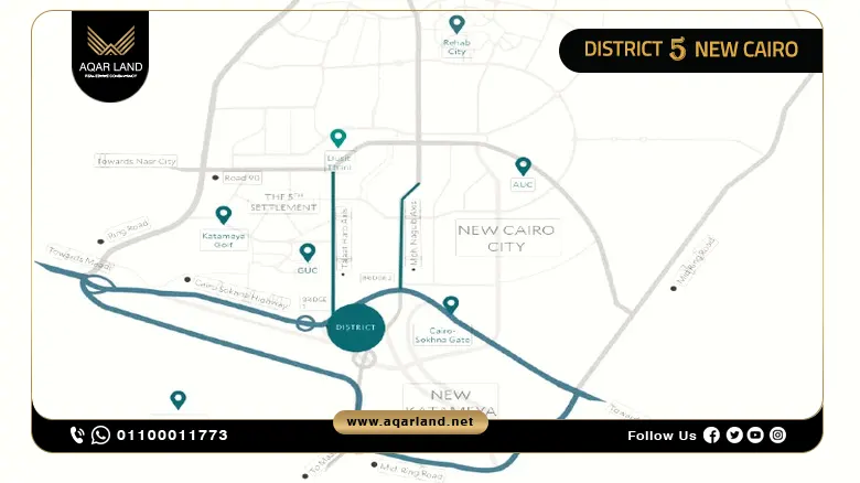 District 5 Compound New Cairo in the Fifth Settlement represents a premium experience of modern living introduced by Marakez Real Estate Development. It’s a residential community tailored for those seeking a serene and luxurious lifestyle, offering an exceptional living experience amidst other surrounding residential projects.