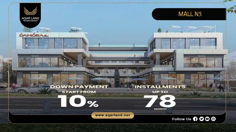 Developed by Damora Developments, N5 Mall Fifth Settlement is designed to meet the growing demand for premium commercial, administrative, and medical spaces in New Cairo, benefitting from its luxurious and vibrant atmosphere, blended with the high buying powers of its elite residents and visitors; allowing business to bloom and investors to flourish.