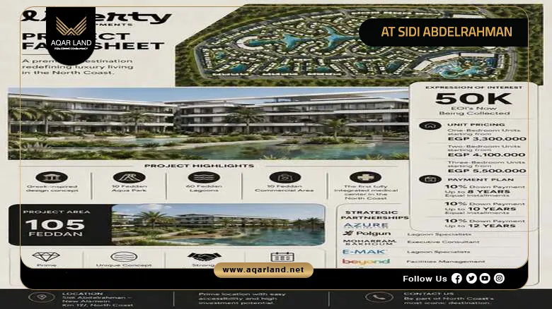 Liberty Developments is the real estate hero behind At Sidi Abdelrahman Resort, a rising name that has confidently entered the North Coast market with such a prestigious project that is crafted excel in a highly competitive area.