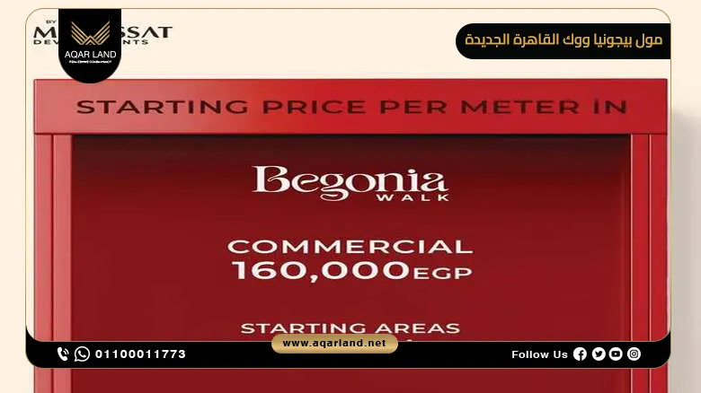 محلات تجارية للبيع في بيجونيا ووك بسعر يبدأ من 160,000 جنيه مصري للمتر مربع.