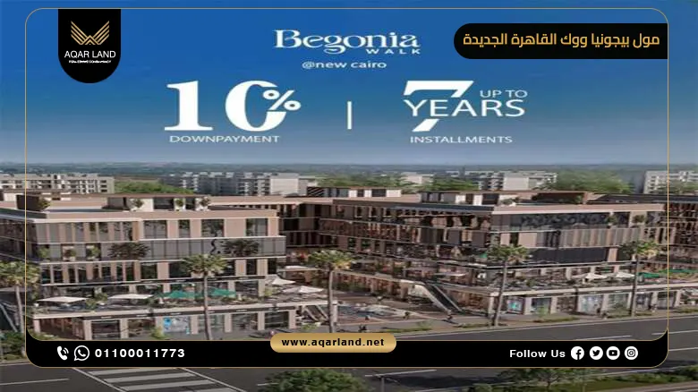 مقدم تعاقد: وحدات استثمارية للبيع في بيجونيا ووك مول تبدأ من 10% من سعر الوحدة.