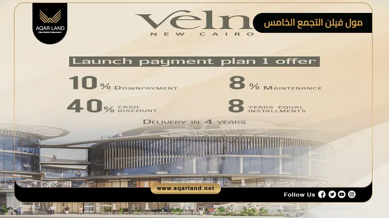 يعد مول فيلن التجمع الخامس Veln Mall New Cairo بمثابة انطلاقة جديدة تقودها شركة نجم للتطوير العقاري Najm Developments، في هذه المنطقة الراقية ذات المرافق العصرية والخدمات المتكاملة.