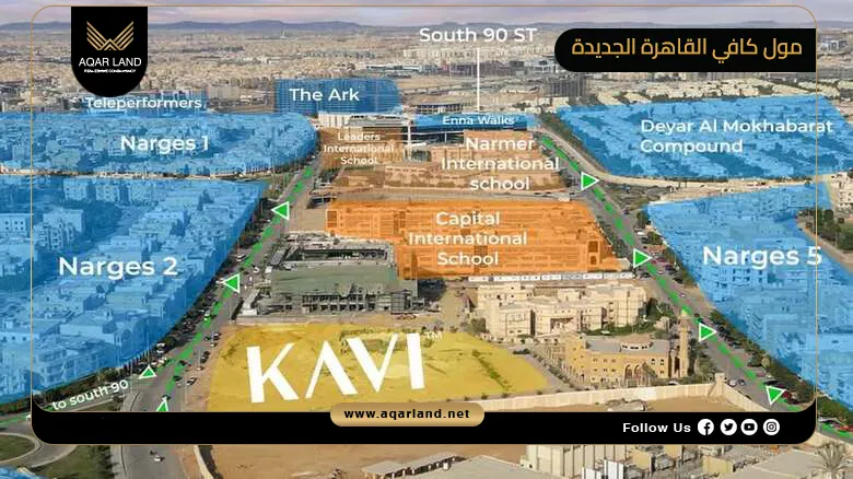 يأتي Kavi Mall New Cairo في قلب منطقة النرجس بالتجمع الخامس، وهي واحدة من أكثر المناطق ازدحاماً شرق القاهرة، فهي منطقة تجمع بين الحركة المستمرة والبيئة الراقية التي يبحث عنها المستثمر والعميل، مما يمنحك قيمة استثنائية داخل واحدة من أهم البقع النابضة بالحياة.