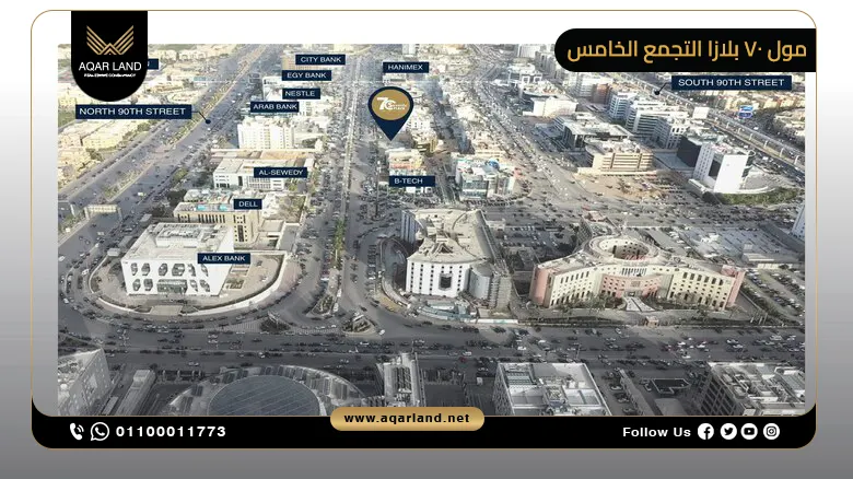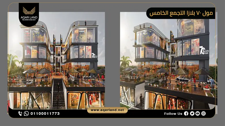 بداخل أهم الوجهات في التجمع الخامس يأتي مول 70 بلازا التجمع الخامس في مجمع البنوك ويتوسط أهم شارعين في القاهرة الجديدة، وهما: شارع التسعين الشمالي والجنوبي، كونه يمثل وجهة حيوية اختارتها شركة ريجان للتطوير العقاري ليكون مشروعها التجاري والإداري الذي يلبي التطلعات المستقبلية لرواد الأعمال والمستثمرين، حيث امتزجت فيه جودة التصميم المبتكر مع الإبداع التصميمي لواحد من أهم مشروعاتها.