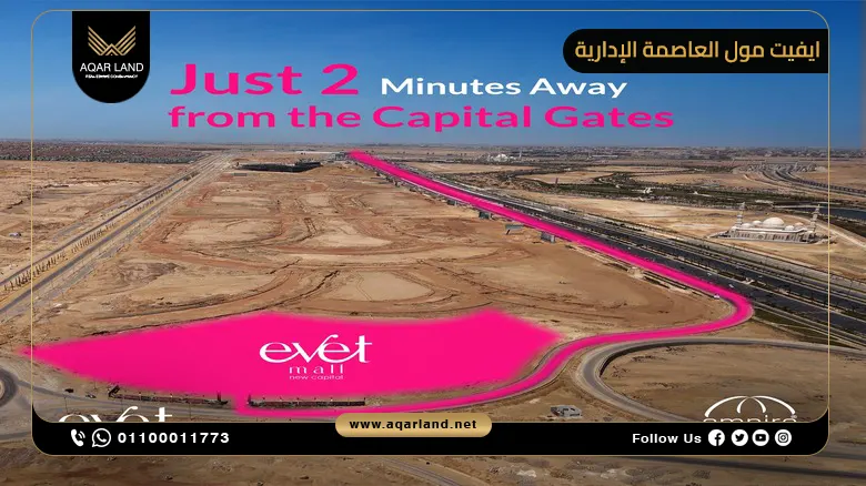 يبعد مول إيفت نيو كابيتال فقط 2 دقيقة عن البوابة الرئيسية للعاصمة الإدارية؛ مما يضعك على مقربة من أهم المحاور والطرق الهامة.
