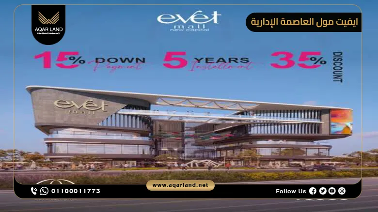 كما يمكنك شراء محل تجاري في ايفيت مول نيو كابيتال بسعر متر يبدأ من 210,000 جنيه مصري.