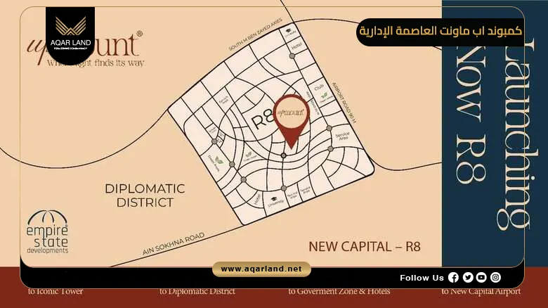 وقع اختيار شركة امباير ستيت على الحي السكني الثامن R8، ليكون موقعًا لكمبوند اب ماونت العاصمة الإدارية Upmount New Capital، ويتميز هذا الحي بالتخطيط الجيد وتوفر الخدمات بشكل يلبي مختلف التطلعات والاحتياجات.