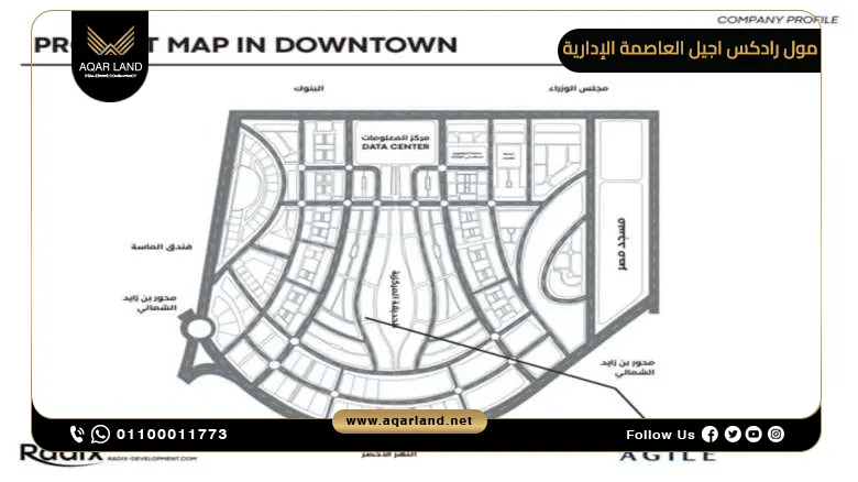 كما يقع مول راديكس اجايل العاصمه الاداريه في قلب منطقة حيوية وهي الداون تاون Down Town؛ مما يجعله في منطقة جذب استثماري قوية ويضمن توافد العديد من الزوار والعملاء على وحداتك سواءً التجارية أو الإدارية أو الطبية، كما تتميز جميع وحدات مشروع اجيل بيزنس كومبلكس بفيو مميز على الحديقة المركزية مباشرةً.