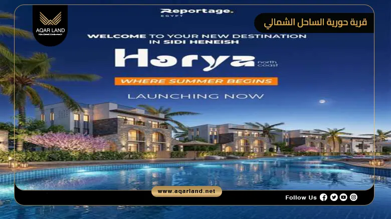 في قرية حورية الساحل الشمالي Village Horya North Coast، يستيقظ السُكان والمُقيمين على سيمفونية أمواج هادئة، بخليج سيدي حنيش، حيث تلتقي فيه الفخامة العالمية بجمال الطبيعة النقي، وقد أطلقت مشروع حورية شركة ريبورتاج للتطوير العقاري، لكي تقدم من خلاله تجربة استجمام راقية بالكيلو 246، الذي يُسمى بمالديف مصر، حيث المياه الساحرة والرمال البيضاء، التي تداعب الحواس في كل لحظة، مع تصميم معماري مبتكر على هيئة مصاطب، لتجعل إشراقة الشمس ورؤية مياه البحر من داخل الوحدات، هي بداية كل يوم.